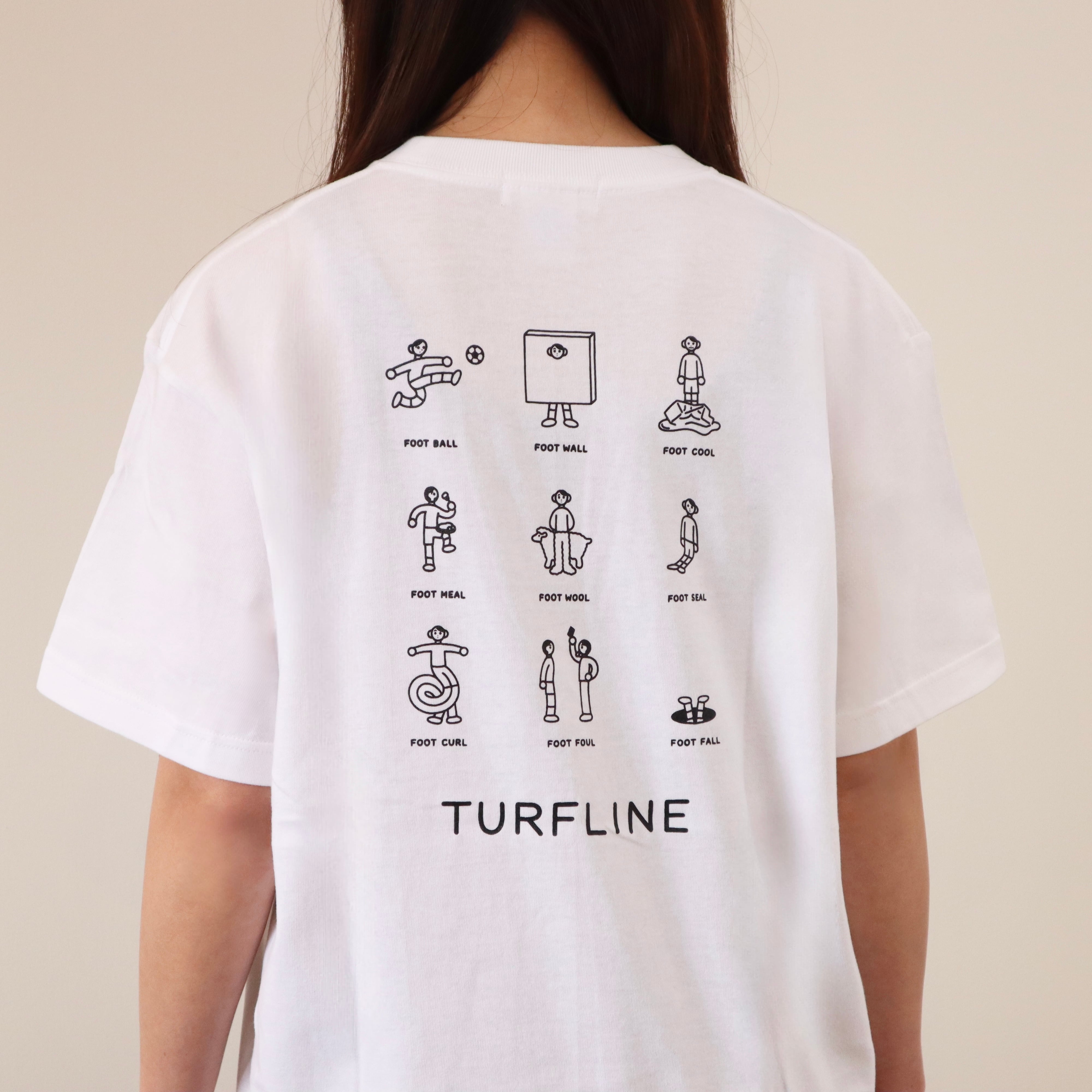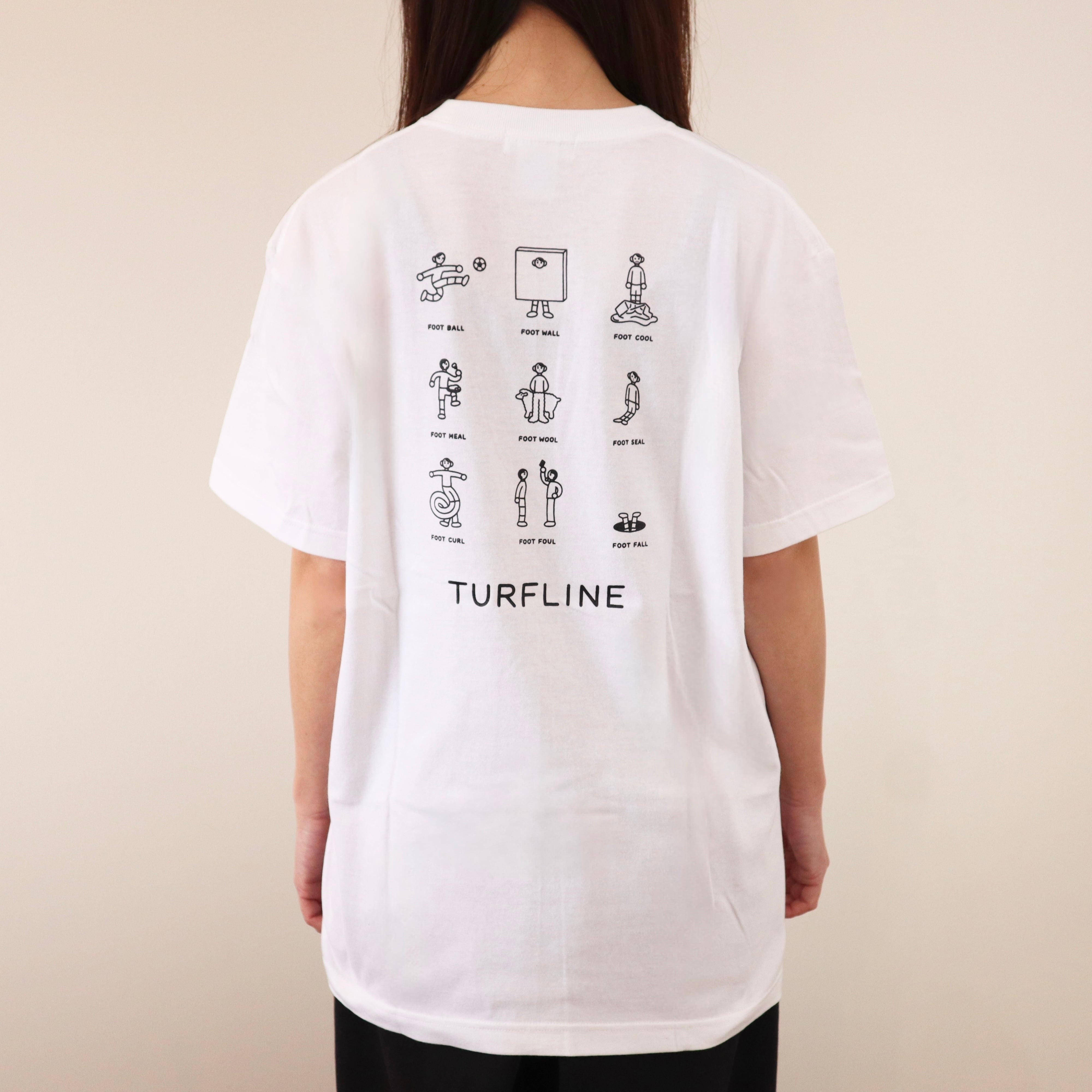 「FOOT BALL」をモチーフに、ユニークで多彩なデザインが描かれています。バックプリントになります。